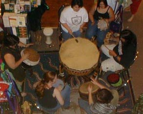 which they can contact their spirit guides, while others drum in large